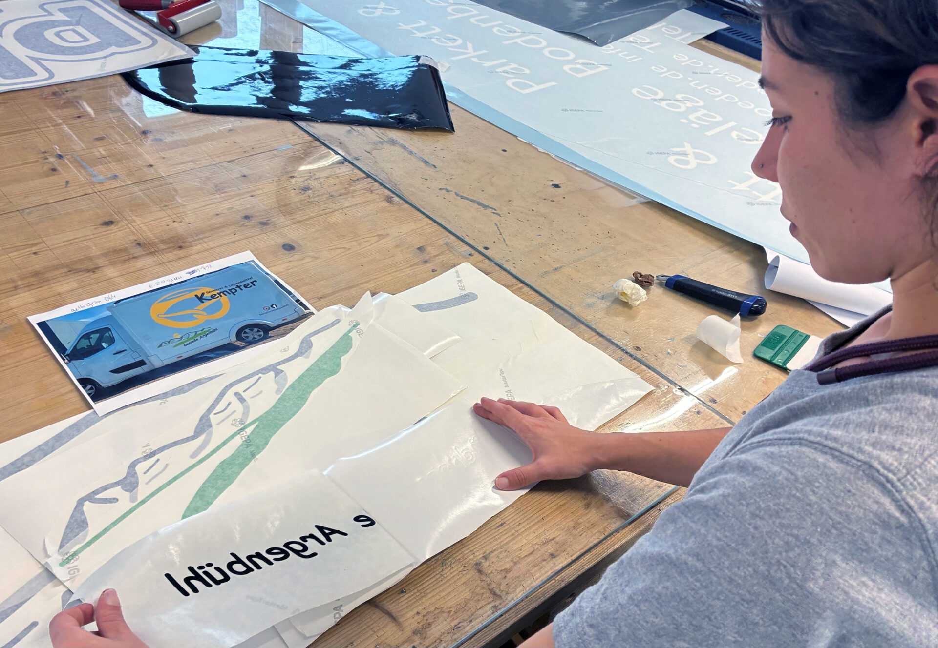 Montage und Service – Alles aus einer Hand: Unsere Leistungen hören nicht bei der Produktion auf. Unser erfahrenes Montageteam sorgt dafür, dass Ihre Werbesysteme und Beschriftungen vor Ort fachgerecht installiert werden. Ob Fahrzeugbeklebung, Schaufensterfolien oder Fassadenschilder – wir garantieren eine präzise Umsetzung, die Ihren Anforderungen entspricht.